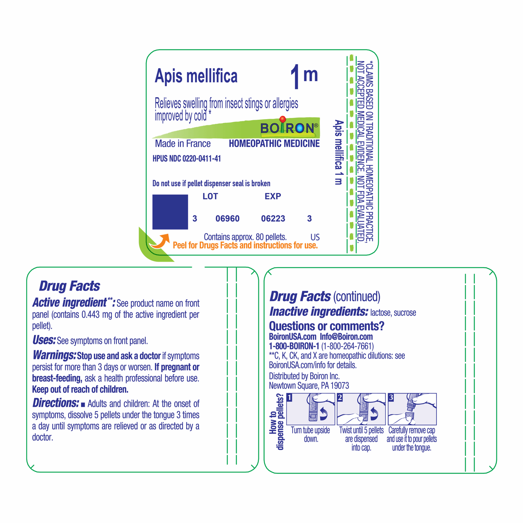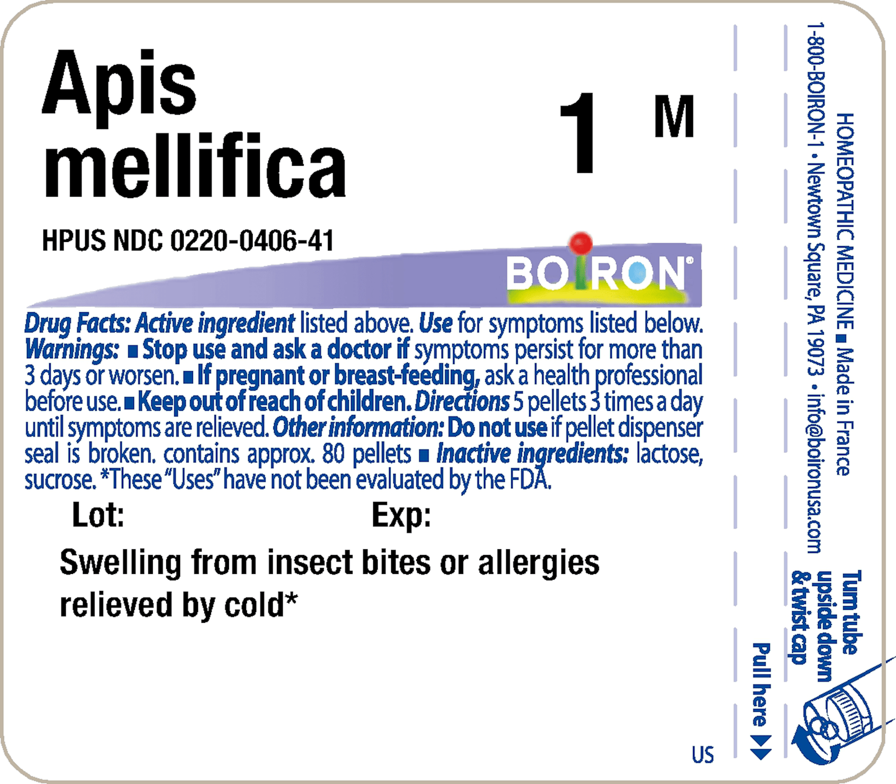 Customize your care with Boiron single medicines for highly targeted relief. Apis Mellifica 1M is a homeopathic medicine that relieves swelling from insect stings or allergies improved by cold.*The pellets melt in your mouth and can be taken on the go, no food or water needed. They come in an easy dispensing tube of approx. 80 pellets (16 doses). Boiron single medicines are ideal for adults and children and do not contain artificial colors, flavors, sweeteners, or preservatives. Always use according to the label instructions unless directed by your health care professional.