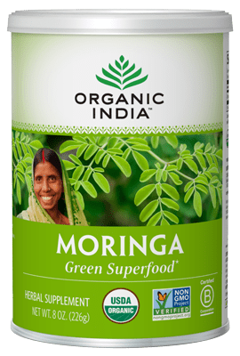 Native to India and Africa, Moringa (Moringa oleifera) is a nutritionally complex superfood. Moringa is considered one of the most complete, nutrient-dense plants on earth. It contains 25 grams of pure plant protein per 100 grams, is a rich source of Vitamins A, E, K, iron, and calcium, and contains 2.4 grams of fiber per 10 gram serving.*
